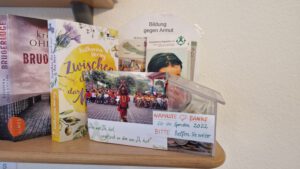 Mein Name ist Birgit Vogt, ich bin Zahnärztin und habe eine kleine Praxis in Thüringen. Ich hatte schon Erfahrungen gesammelt im Einwerben von Spenden durch Bücheraktionen. Also dachte ich mir, warum nicht weiter machen mit den Büchern, war doch bereits meine Praxis als Anlaufpunkt für gebrauchte Bücher/CD`s/Filme bekannt. Also baute mein Mann ein Regal ins Wartezimmer, ich stellte eine Kasse des Vertrauens auf, der neueste Rundbrief hängt aus. Mit der Zeit wurde das Bücherangebot von Patienten gut angenommen und es ist jedes Jahr spannend, die Kasse zu leeren, das Geld zu zählen und alles für das nächste Jahr vorzubereiten. Die gesammelten Gelder werden von mir und meinem Mann auf einen runden Betrag aufgestockt.